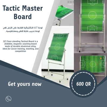 Double-sided magnetic coaching board with full-pitch and half-pitch views. Includes 27 magnets, 2 markers, and an eraser. Size: A3 (82cm × 40cm). Ideal for tactical analysis and team talks. Carry bag included.